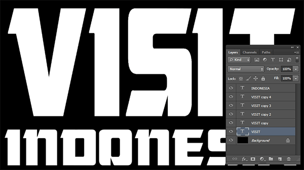 Stock images used for this Photoshop text effect tutorial: bali-301462, buffalo-825584, landscape-603950, mosque-243175, temple-598969, wayang-695696.
