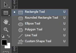 Click the rectangle tool icon on the toolbar. The Rectangle Tool is a group with the Rounded Rectangle Tool, Ellipse Tool, Polygon Tool, Line Tool and Custom Shape Tool.